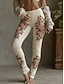 Жен. Леггинсы Уютные леггинсы Отпуск Винтаж Этнический стиль Полная длина Завышенная Цветочный принт Рисунок Удобный Эластичная Отпуск Повседневные Праздники Бежевый Весна Осень Зима Приталенный крой