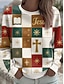 Новогодняя тематика Жен. Футболка Графика Дед Мороз Мода На каждый день Длинный рукав Вырез под горло Круглый вырез Обычные топы Повседневные выходные С принтом Синий Красный Лиловый Зеленый