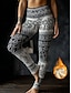 Жен. Леггинсы Отпуск Винтаж Мода Полная длина Завышенная Цветочный принт Графика Рисунок Сохраняет тепло Мягкий Дышащий Эластичность Отпуск Для улицы Повседневные Черный и белый Весна Осень Зима