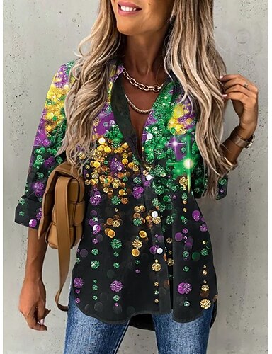 Карнавал Вторник на масляной неделе Жен. Рубашка Блуза Пэчворк Пуговицы С принтом Омбре Графика Геометрический принт Винтаж На каждый день Длинный рукав V-образный вырез Рубашечный воротник