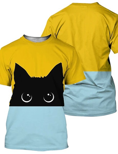 Муж. Шутки Футболка С короткими рукавами Футболка 3D печать Вырез под горло Рубашка преувеличены Оригинальный рисунок Повседневные Для клуба Для вечеринок Синий Желтый Лиловый Лето Весна Все сезоны