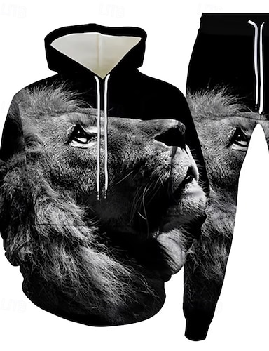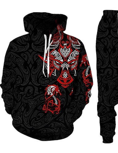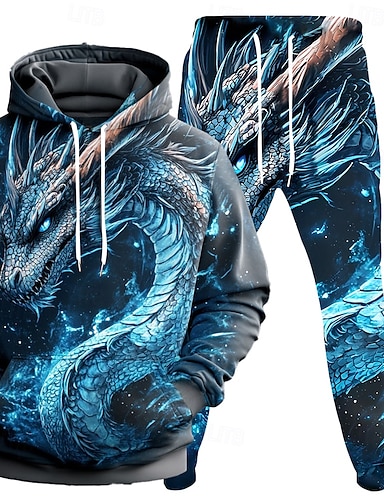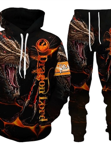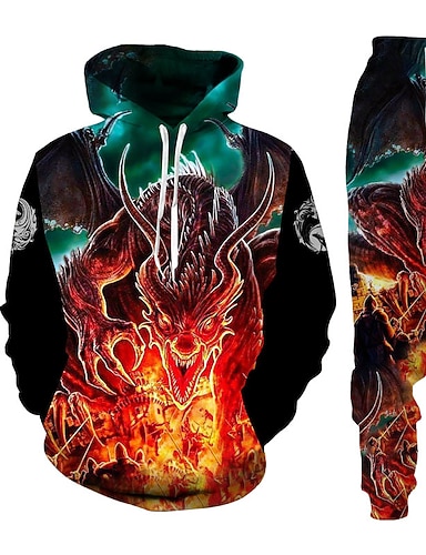 Муж. Дракон 2шт Комплекты 3D-толстовок Спортивный костюм Толстовка с капюшоном Длинный рукав Длинные брюки Капюшон На каждый день Одежда для спорта и отдыха 3D печать Весна Осень Зима Красный