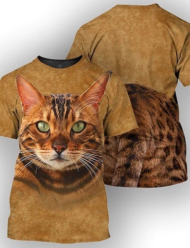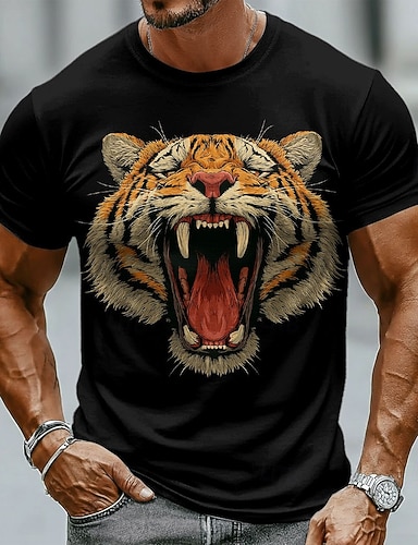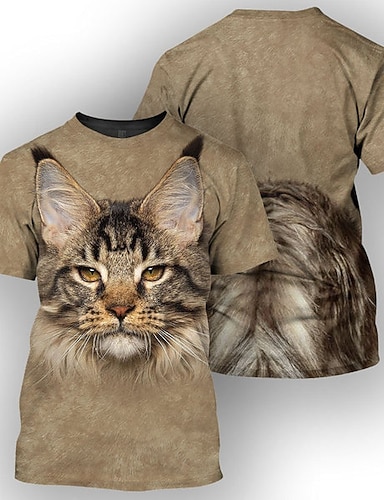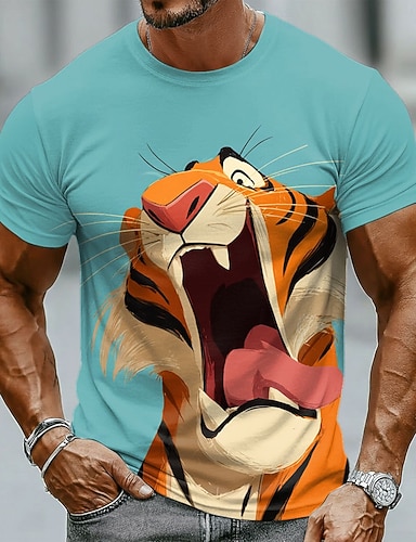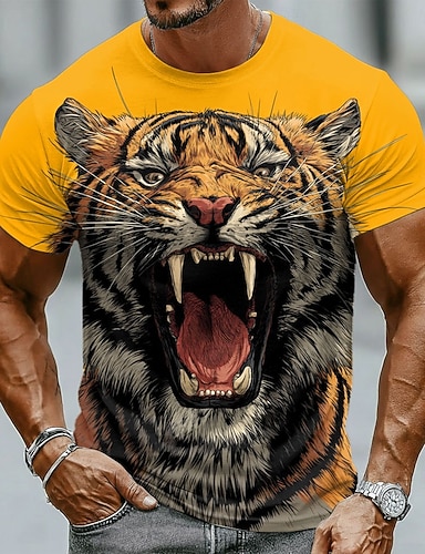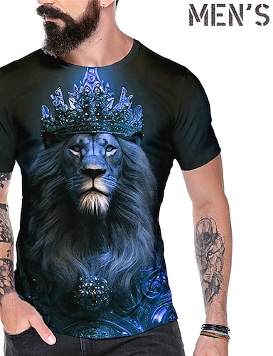 Муж. Универсальные Лев Графические принты Футболка С короткими рукавами Футболка 3D печать Вырез под горло Рубашка Оригинальный рисунок На каждый день Большой и высокий Повседневные Праздники Серый