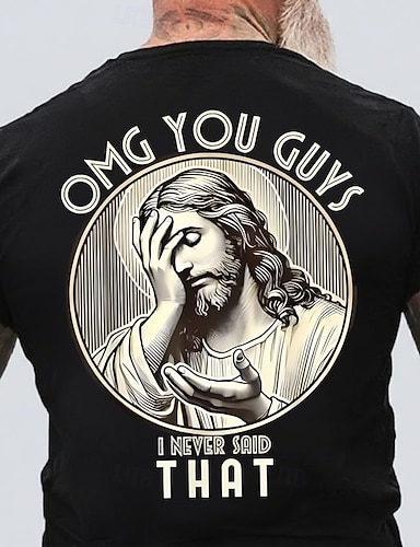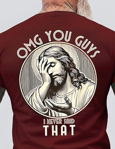 Муж. 3D-печати 3D Иисус Футболка С короткими рукавами Футболка 3D печать Вырез под горло Рубашка преувеличены Оригинальный рисунок Для вечеринок Повседневные Праздники Белый Лето Весна Все сезоны