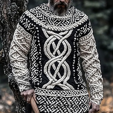 Муж. Викинг Пуловер Свитер Вязаная одежда "Круглый вырез ""под горло""" Ретро На каждый день Повседневные 3D печать Вязанная Сохраняет тепло Длинный рукав Весна Осень Зима Черный Красный Зеленый
