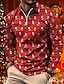Новогодняя тематика Муж. Каждый Поло Длинный рукав Футболки поло Лацкан На каждый день на открытом воздухе Одежда для спорта и отдыха Праздничная одежда 3D печать Пуговицы Весна Осень Зима