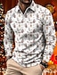 Новогодняя тематика Муж. Дед Мороз Снеговик Новогодняя ёлка Рубашка Кнопка рубашка Длинный рукав Веселая Новогодние подарки Праздники Весна Осень Отложной 3D печать рубашки с воротником