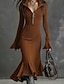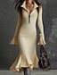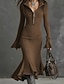 Жен. Платье средней длины Платье-свитер Платье силуэта Русалка Элегантный стиль Современное Отпуск Праздники Свидание Тонкие Полотняное плетение Длинный рукав Рубашечный воротник