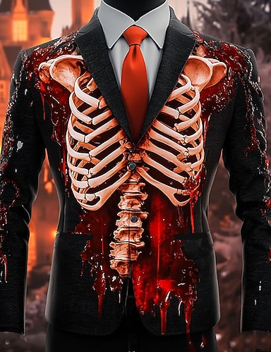 Halloween Муж. Скелет Пиджак На каждый день Темный фестиваль 3D печать Весна Осень Зима Острый Длинный рукав Красный Оранжевый Зеленый