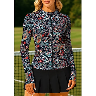 Жен. Универсальные Огурцы Топы Спортивная рубашка Теннисная рубашка Теннисный топ Длинный рукав Молния Цветочный UPF50+ Устойчивость к УФ Эластичность Влагоотводящие Дышащий Волейбол Теннис Гольф