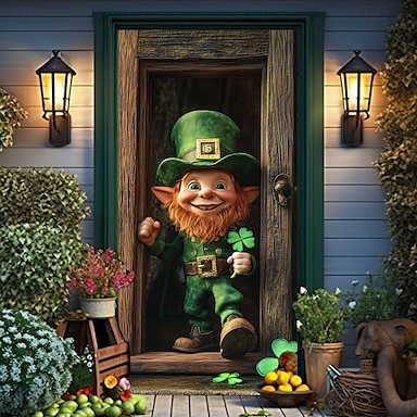 украшения на дверь ко дню святого патрика дверные чехлы гобелен на дверь с гномом украшение на дверь занавеска фон для внутренней/наружной двери баннер для входной двери фермерского дома