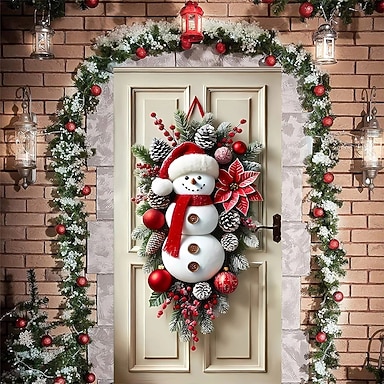 Рождественские шторы на дверь, зимние праздничные шторы со снеговиком, рождественские подарочные коробки, венок и мерцающие огни для дома, прихожей, гостиной, спальни, внутреннего и наружного