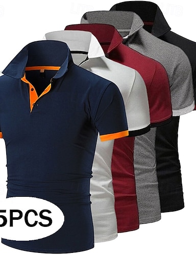 Муж. Поло Рубашка для гольфа Повседневные Спорт Классика С короткими рукавами Классический Сплошной цвет Полотняное плетение 5 предметов Мульти-упаковка Лето Весна Все сезоны Приталенный крой 1 2 3 4