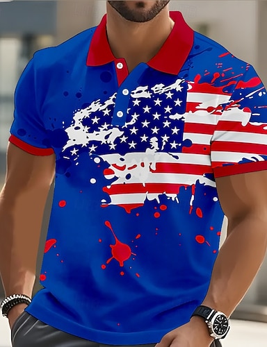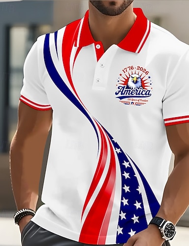 4 июля 2026 г., 250-летие Муж. Флаг Гольф Спортивные рубашки поло С короткими рукавами Футболки поло Рубашки с воротником На каждый день Одежда для спорта и отдыха Фестивальный наряд Пуговицы Лето