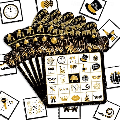 24 игрока в черном &золотая новогодняя игра в бинго с бесплатными жетонами &Лист приглашений - товары для вечеринок в стиле бинго для взрослых, сувениры на новогоднюю вечеринку, пронумерованные