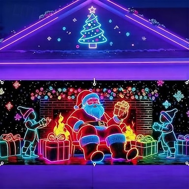 Рождественский баннер на дверь гаража, светящийся в темноте, 2D, праздничные плоские чехлы на дверь гаража с мультяшными Санта-Клаусом и эльфом, украшение для рождественской вечеринки на открытом