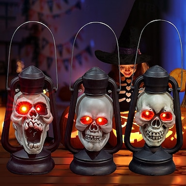 Светодиодная лампа-поручень на Хэллоуин с изображением черепа и красными глазами, светящаяся в темноте, ретро-керосиновая лампа, украшение для вечеринки