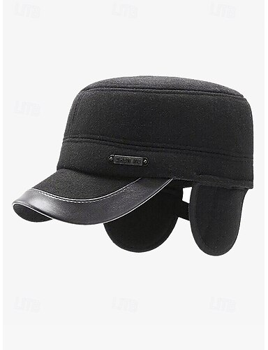мужская зимняя шапка-ушанка – черная шапка из искусственной шерсти с полями из искусственной кожи, теплая и ветрозащитная конструкция
