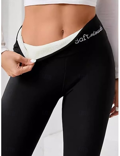 Жен. Нормальная Флисовые штаны Виноделие Колготки Леггинсы На каждый день Легкая одежда По щиколотку Завышенная Сплошной цвет Подтяжка Комфорт Утягивание живота Эластичная Повседневные выходные