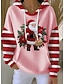 Жен. Толстовка с капюшоном и пуловером Графика Новогодняя ёлка На каждый день Длинный рукав Капюшон Обычные топы Для улицы На каждый день Повседневные Черный Белый Розовый Красный Зеленый Осень Зима