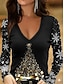 Рождественская футболка для женщин с изображением ёлки и снежинок графическая клетчатая винтажная стильная классическая длинный рукав V-образный вырез обычные топы повседневные принт черный красный