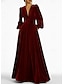 Красное-синее-черное бархатное вечернее платье А-силуэта элегантное формальное для осенней свадьбы в пол с длинными рукавами V-образным вырезом карманом и разрезом