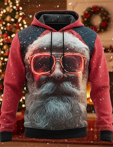 Новогодняя тематика Муж. Дед Мороз Очки Толстовка Мода Повседневные На каждый день Вырез под горло Капюшон Дом Для вечеринок Подарок Красный Красный 2 Кулиска Осень Зима Дизайнер S M L XL XXL XXXL