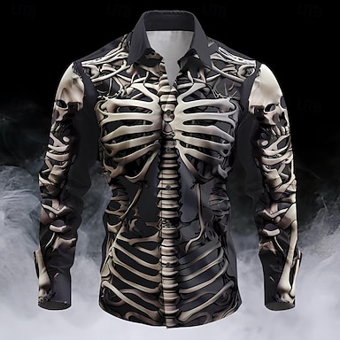 Halloween Муж. Черепа Костюмы на Хэллоуин Кнопка рубашка Длинный рукав Ужас Темный Вечерние наряды Осень Зима Весна лето Рубашечный воротник Кнопка вверх 3D печать Черный