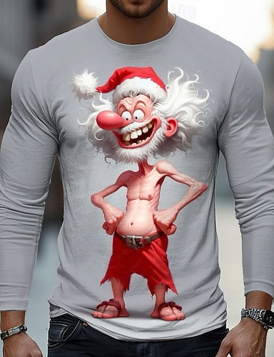 Новогодняя тематика Муж. 3D Пожилой человек Футболка Длинный рукав Футболка 3D печать Вырез под горло Рубашка Мода Классический Для улицы Повседневные Светло-синий Темно-серый №1 Лиловый Лето Весна