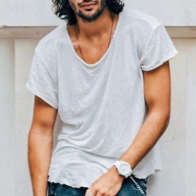 Муж. Футболка Футболка из бамбука С короткими рукавами Вырез под горло Весна лето Полотняное плетение Мода На каждый день Удобный Необработанный край Для улицы Праздники Пляж Белый Футболка для мужчин