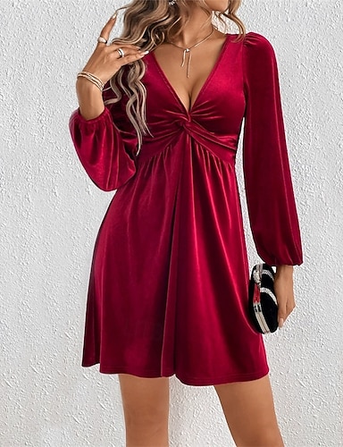 Жен. Платье средней длины Бархатное платье Коктейльные платья Элегантный стиль Мода Современное на открытом воздухе Для вечеринок Вечерние наряды Стандартный Полотняное плетение Длинный рукав