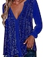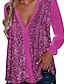женская рубашка блузка металлик базовый блестящий принт длинный рукав обычные топы v-образный вырез вечеринка новый год желтый серый весна осень