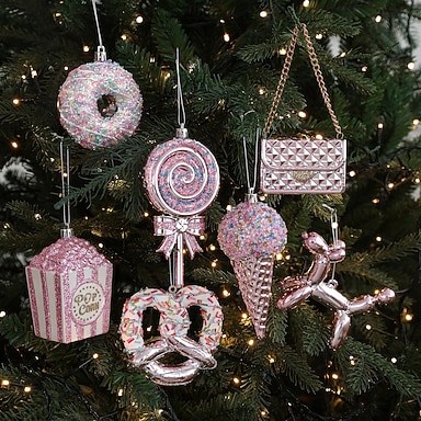 1 шт. 3D розовое рождественское украшение, блестящее мультяшное пластиковое подвесное украшение, милая подвеска на рождественскую елку для дома, окна или праздничного декора