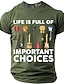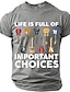 Мужская жизнь полна важных решений. Футболка с графическим принтом «Коллекция гитар», забавная, саркастическая, подарок для гитариста-музыканта, черная, стандартный крой, дизайнерская одежда, размеры