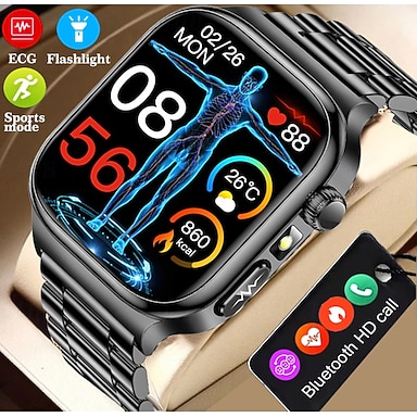 Новые 2,04-дюймовый AMOLED-экран, аккумулятор 650 мАч, ЭКГ, PPG, диагностика здоровья, умные часы для мужчин и женщин, пульсометр, спортивные смарт-часы со светодиодным фонариком