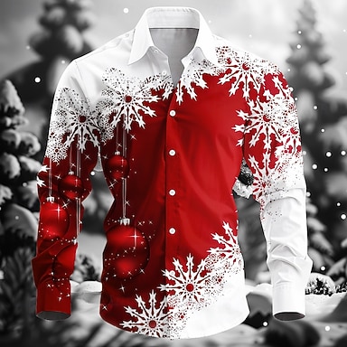 Новогодняя тематика Муж. В снежинку Дизайнерская рубашка Длинный рукав Прибегнуть Мода Повседневная Рождество Для вечеринок Зима Весна & осень Отложной Рубашечный воротник Кнопка вверх
