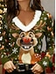 Жен. Пуловер Толстовка Северный олень На каждый день Длинный рукав V-образный вырез меховой воротник Обычные топы Для улицы На каждый день Пэчворк С принтом Синий Темно-лиловый Винный Оливковый