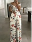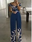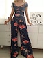 Жен. Нормальная Комбинезоны Элегантный стиль Цветочный принт С короткими рукавами Широкие С открытыми плечами Завышенная Отпуск Повседневные Стандартный Черный Белый Красный Лето