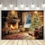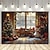 Рождественская сцена, рождественский камин, окно, узор, гобелен, настенная живопись, большой гобелен, настенное украшение, фотография, фон, ткань, шторы, украшение для дома, спальни, гостиной