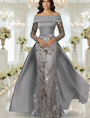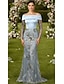 Русалка В пол Вышивка бисером Вечернее платье Платье матери невесты Выпускные платья Вечернее платье С пышной юбкой Торжественное платье Элегантный стиль Блестящая Стиль знаменитостей Длинный рукав