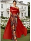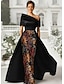 Комбинезон В пол Вечернее платье Бальное платье с верхней юбкой Торжественное платье Элегантный стиль Стиль знаменитостей Длинный рукав V-образный вырез Свадебный гость Обручение