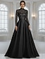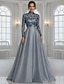 А-силуэт В пол Вышивка бисером Вечернее платье Платье матери невесты Вечернее платье С пышной юбкой Торжественное платье Элегантный стиль Винтаж Рукав 3/4 Вырез под горло Свадьба Официальные Карман