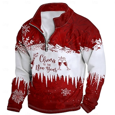Новый год Муж. Графика с Новым Годом Худи Толстовка с застежкой-молнией Длинный рукав Толстовка Воротник-стойка Повседневные На каждый день Винтаж Ретро 3D печать Отпуск На выход Уличная одежда
