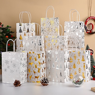 Упаковка из 12 небольших крафт-бумажных пакетов с ручками размером 8,26x6x3,14 дюйма, подарочные пакеты для сувениров, продуктов питания, розничной торговли, вечеринок, дней рождения, шопинга, товаров