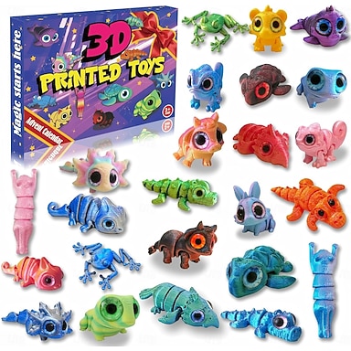 Мини-календарь с изображением животных, напечатанный на 3D-принтере, набор из 24 подвижных гибких фигурок с блестящими глазами, подарок для детей, мальчиков, девочек, малышей, праздничные сувениры,