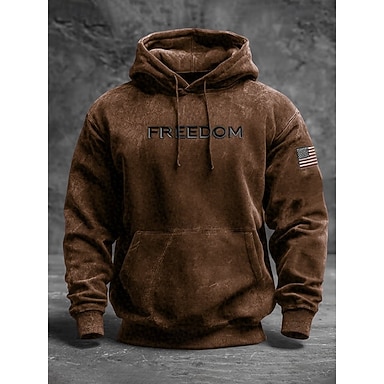 Муж. Американский флаг FREEDOM Толстовка Мода Винтаж Ретро Длинный рукав Капюшон Отпуск Для вечеринок Уличная одежда фестиваль Черный Красный Синий Лиловый Коричневый Рисунок Осень Зима Дизайнер S M