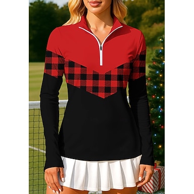 Жен. Контрастных цветов Клетки Клетчатый Толстовка поло Топы Рубашка Спортивная рубашка Длинный рукав С принтом Четверть молния Pullover UPF50+ Устойчивость к УФ УФ-защита Эластичный Дышащий