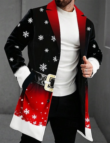 Новогодняя тематика Муж. В снежинку Пиджак Удобный Художественный На каждый день Вечерние наряды Повседневные фестиваль 3D печать Пуговицы Весна Осень Зима Острый Длинный рукав Черный Красный Синий