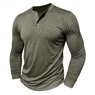 Муж. Рубашка Хенли Футболка Длинный рукав Сплошной цвет Мода Повседневные Пуговицы Хенли на открытом воздухе Для улицы Повседневные Лето Армейский зеленый Черный Белый Футболка Хенли