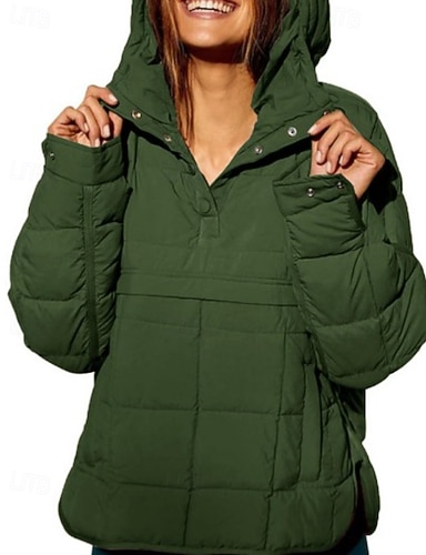 Жен. Куртка из шерпа Удобный Дышащий Пуговицы На каждый день Полотняное плетение Отпуск Для улицы Повседневные На каждый день Однобортный крой Длинная Капюшон Стандартный Длинный рукав Верхняя одежда